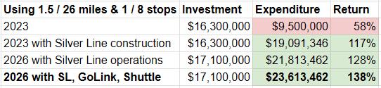 This report excludes the $2.1 Billion to construct the Silver Line and $30 Million in yearly operating costs.