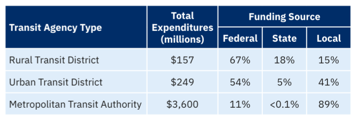 Looking at the United States, most transit agencies of any size rely on state funding for a big portion of its budget.