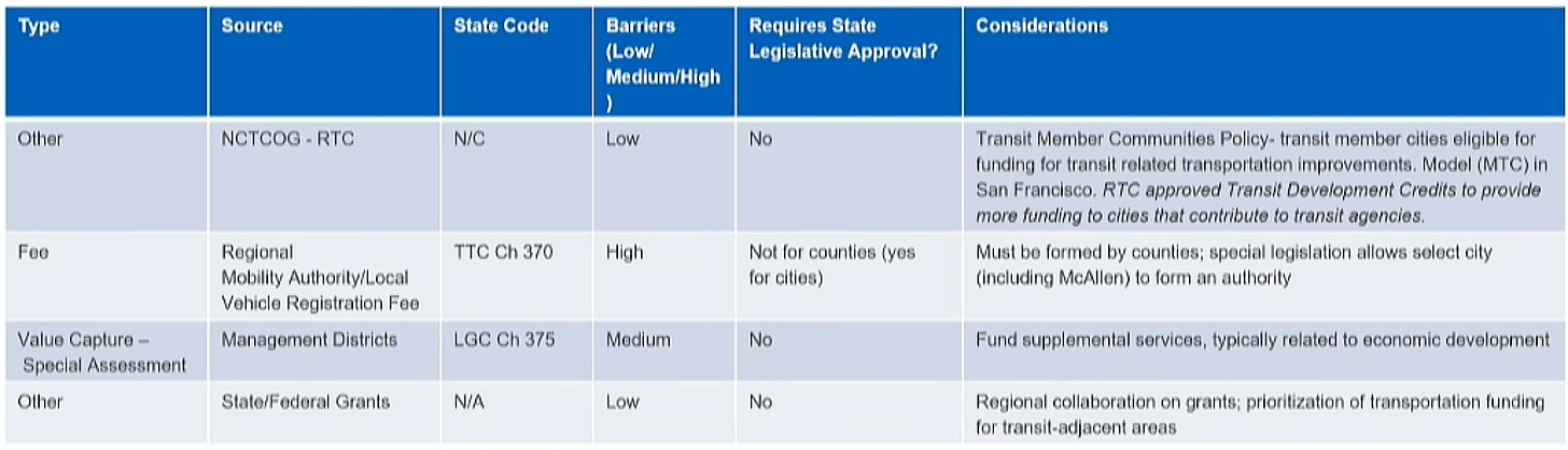 If state or federal funding isn’t feasible due to the political climate, there are other local funding options that can be taken that don’t need the legislature to write a new bill. Several options are being explored by member cities at this moment, as shown in the table below.